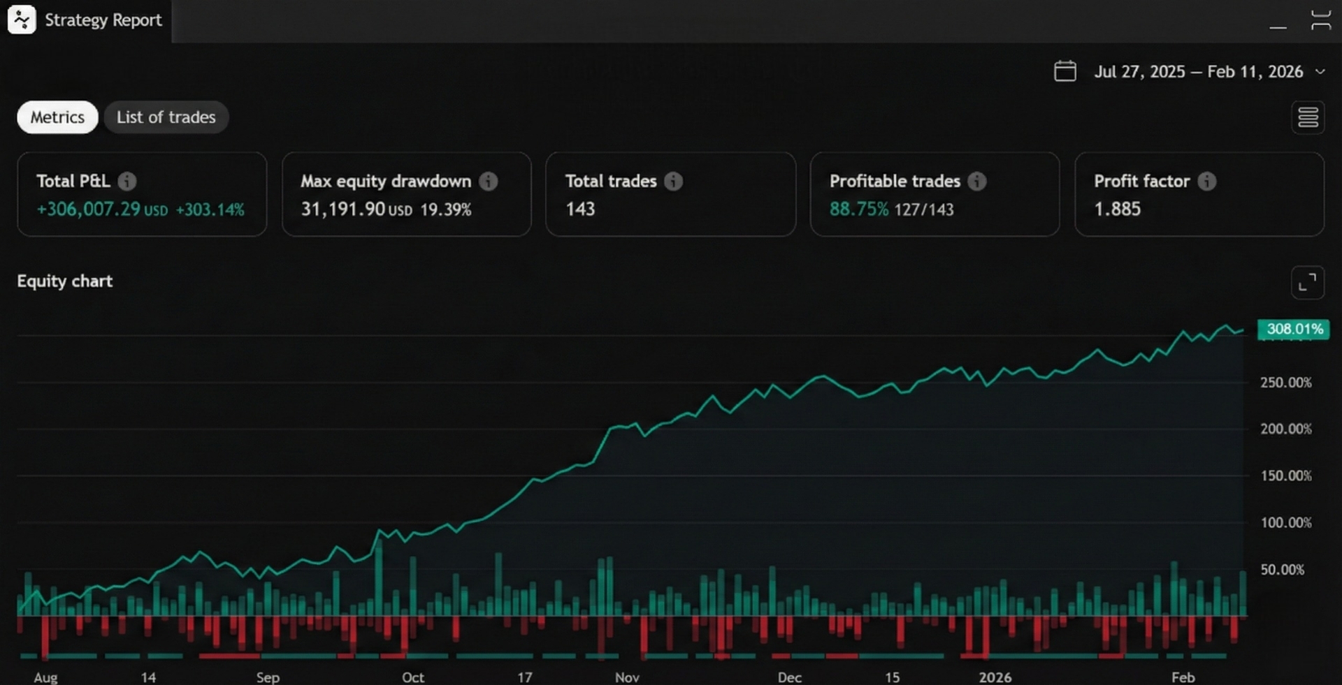 Backtested performance has shown results reaching up to 85% win rate depending on: